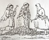Bal maidens were women and girls who broke up stone brought from deep underground. It was part of the process of extracting tin and copper ore in the Cornish mining industry in the 18th and 19th Centuries. On a guided walk towards Trewavas engine house, led Steve Polglase a local mining history expert, we paused near the cliff edge beside what I thought were layers of scree; rubble loosely strewn at the cliff top, rolling towards the sea. Steve explained that this was stone from underground that had been smashed by bal maidens working for the mine, by-products of their work, still here after 150 years or more. I picked up a piece and thought about the woman who had touched it last or shovelled it aside. Holding the stone felt like making a connection with her across the years.