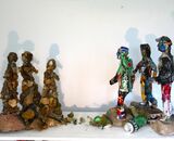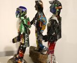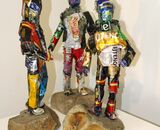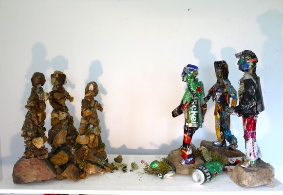 There are many derelict engine houses, shafts and burras (overgrown mounds of mine spoil) in the area where I live. It’s not unusual to find drinks cans - aluminium ‘tinnies’ -scattered around them on the outskirts of towns and villages that used to be mining areas; the discarded end products from modern mining processes made from bauxite ore, most which is mined in Australia. I hope it’s not an unfair assumption that these were left by young men partying after hours. The Tinnie Boys are made from drinks cans that I collected from an engine house near Redruth, and the burras at the edge of my home village.